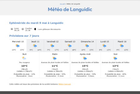 Développement sur-mesure d’un agenda et d’un bulletin météo connecté à l’API de la société bretonne Météo Concept.