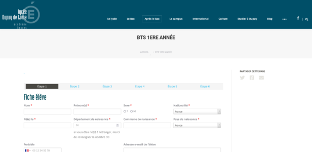 J’ai réalisé en 2019 un système de gestion d’inscriptions en ligne pour le site Internet du lycée Dupuy de Lôme.